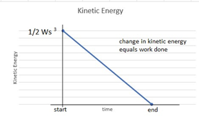 Going back to our ideal imaginary tube with a disk in it, we can think of the wind imparting its kinetic energy to the disk and then allowing it to do work until the disk’s kinetic energy is zero at the end of time T. This view only considers kinetic energy and nothing about wind as a fluid.